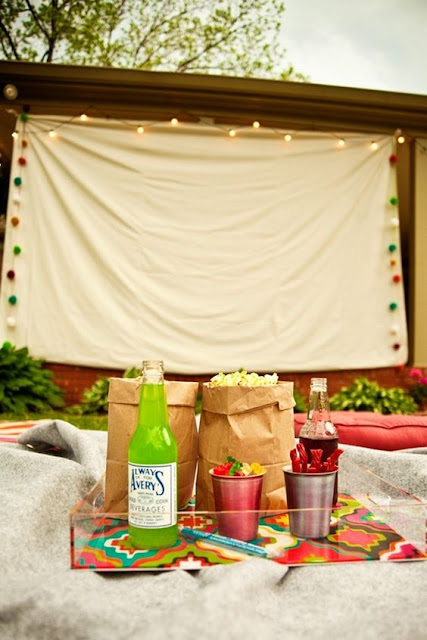 Jeśli szukasz pomysłu, który naprawdę zostanie w pamięci Twoich gości na długi, długi czas przygotuj kino pod gołym niebem. Jeśli jesteś szczęśliwcem posiadającym rzutnik, do zorganizowania takiego kina wystarczy Ci białe prześcieradło ;)